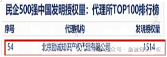 励诚荣誉丨民企500强专利授权代理量位居全国前100